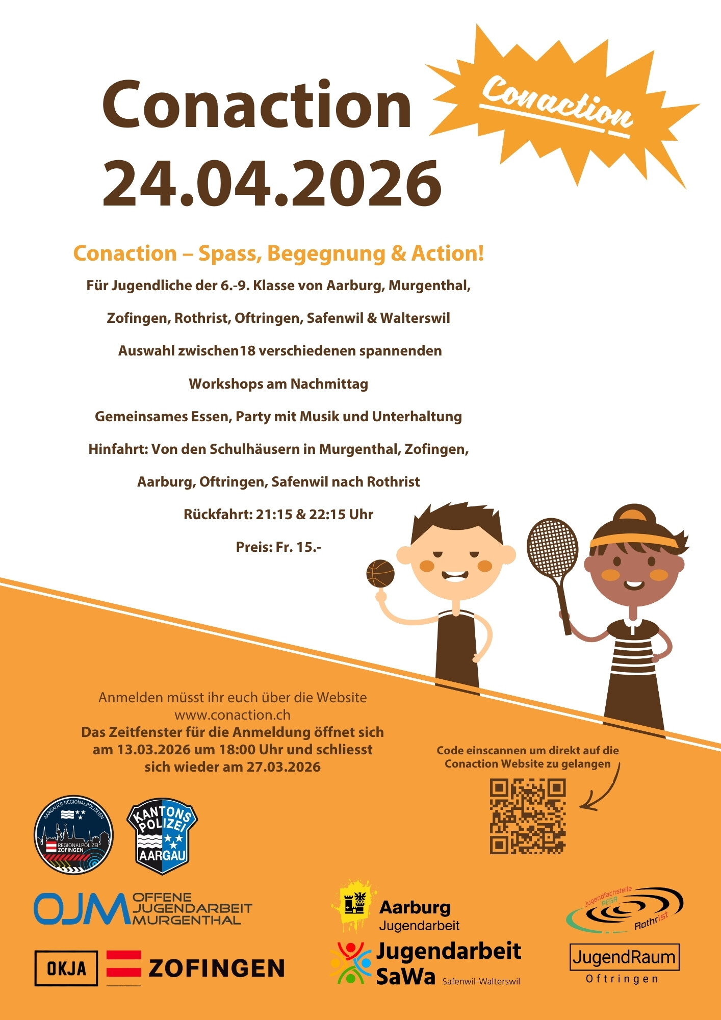 Das nächste Conaction findet am Freitag, 24. April 2026 in Rothrist statt.