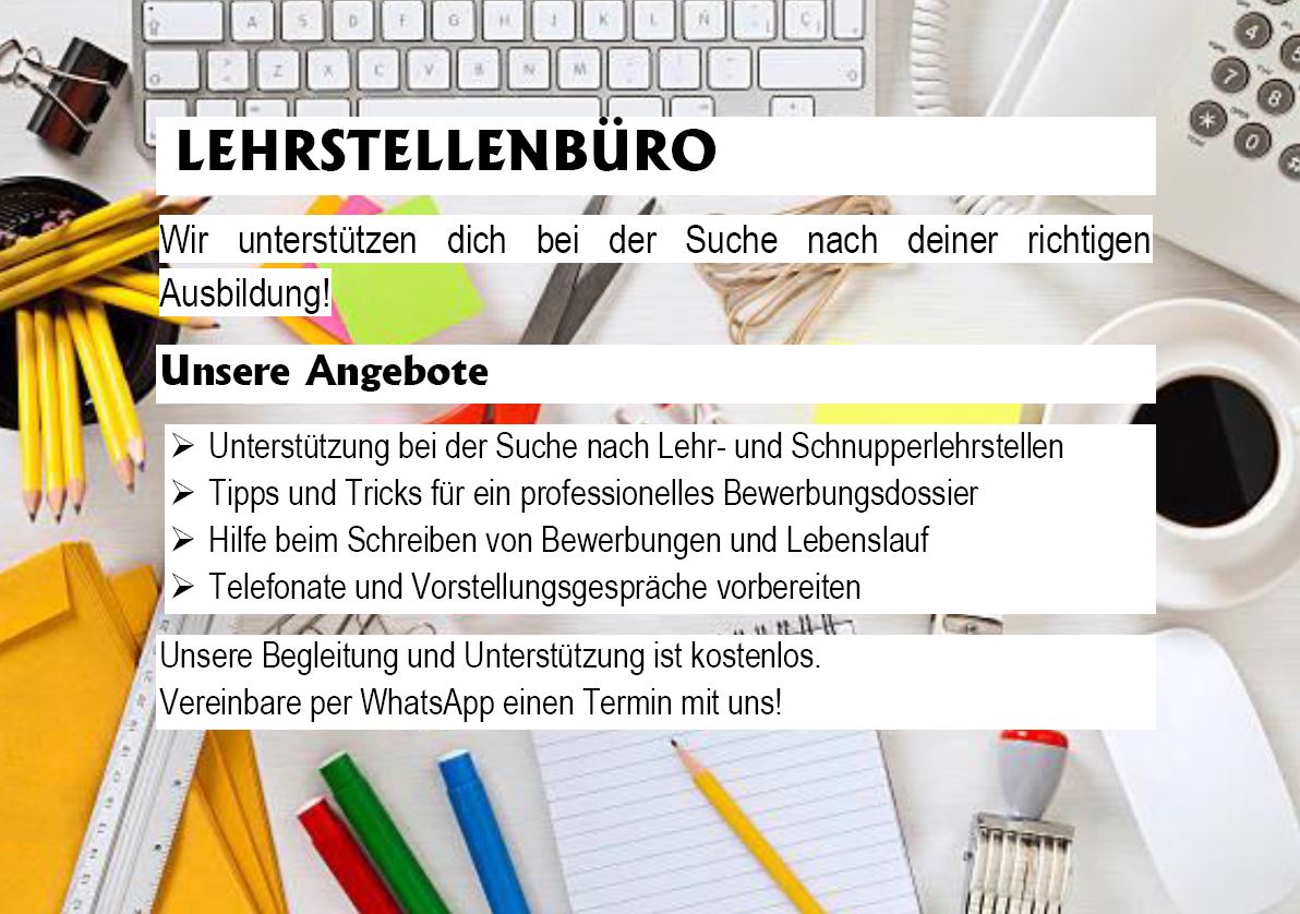 Die fachkompetente Beratung und Begleitung im Prozess der Lehrstellensuche ist ein zentrales Anliegen der Jugendfachstelle Rothrist. Im Rahmen des Lehrstellenbüros vereinbaren wir mit Jugendlichen Termine, an denen wir sie im Schreiben von Bewerbungen und der Vorbereitung für Vorstellungsgespräche und Schnupperwochen coachen.
